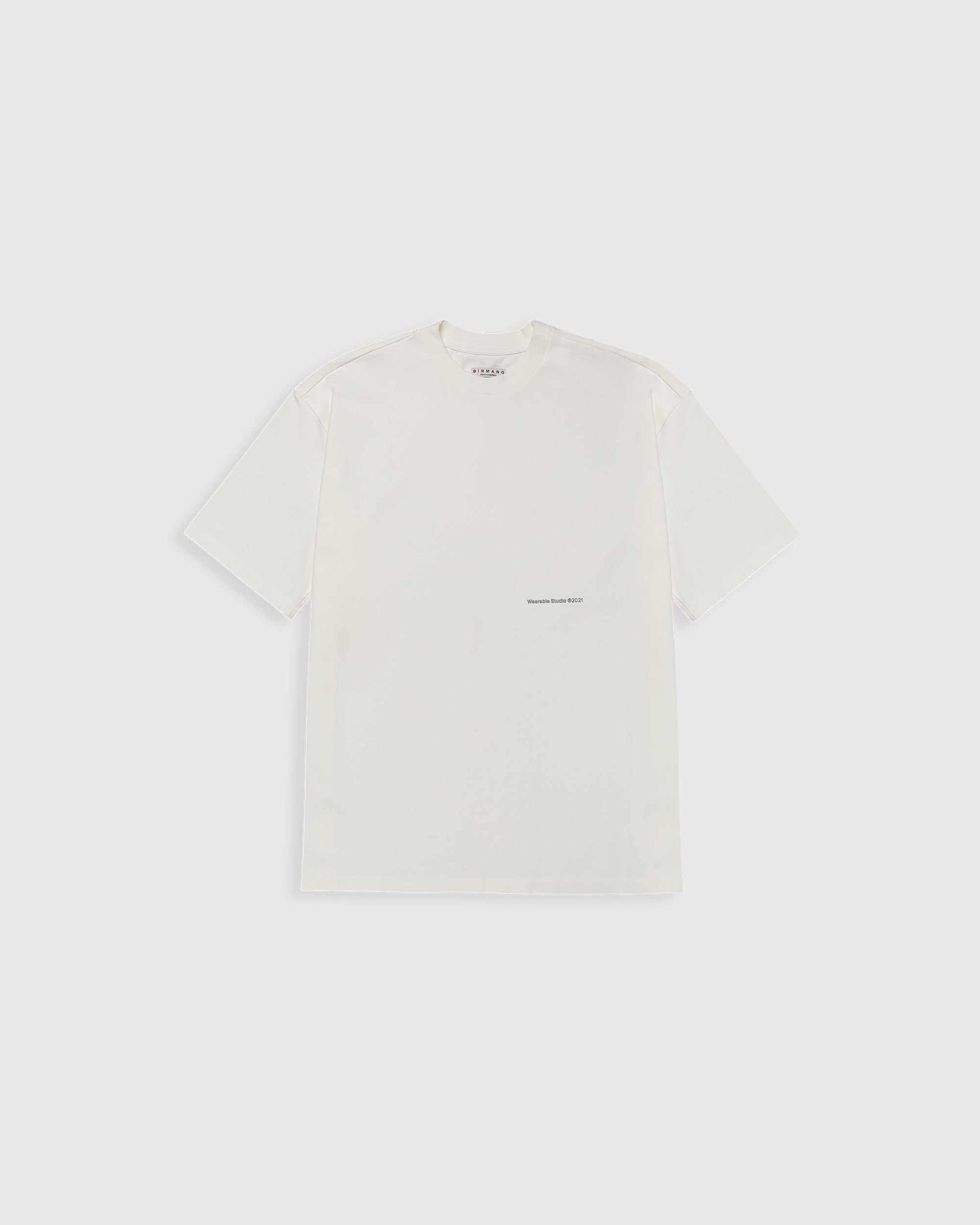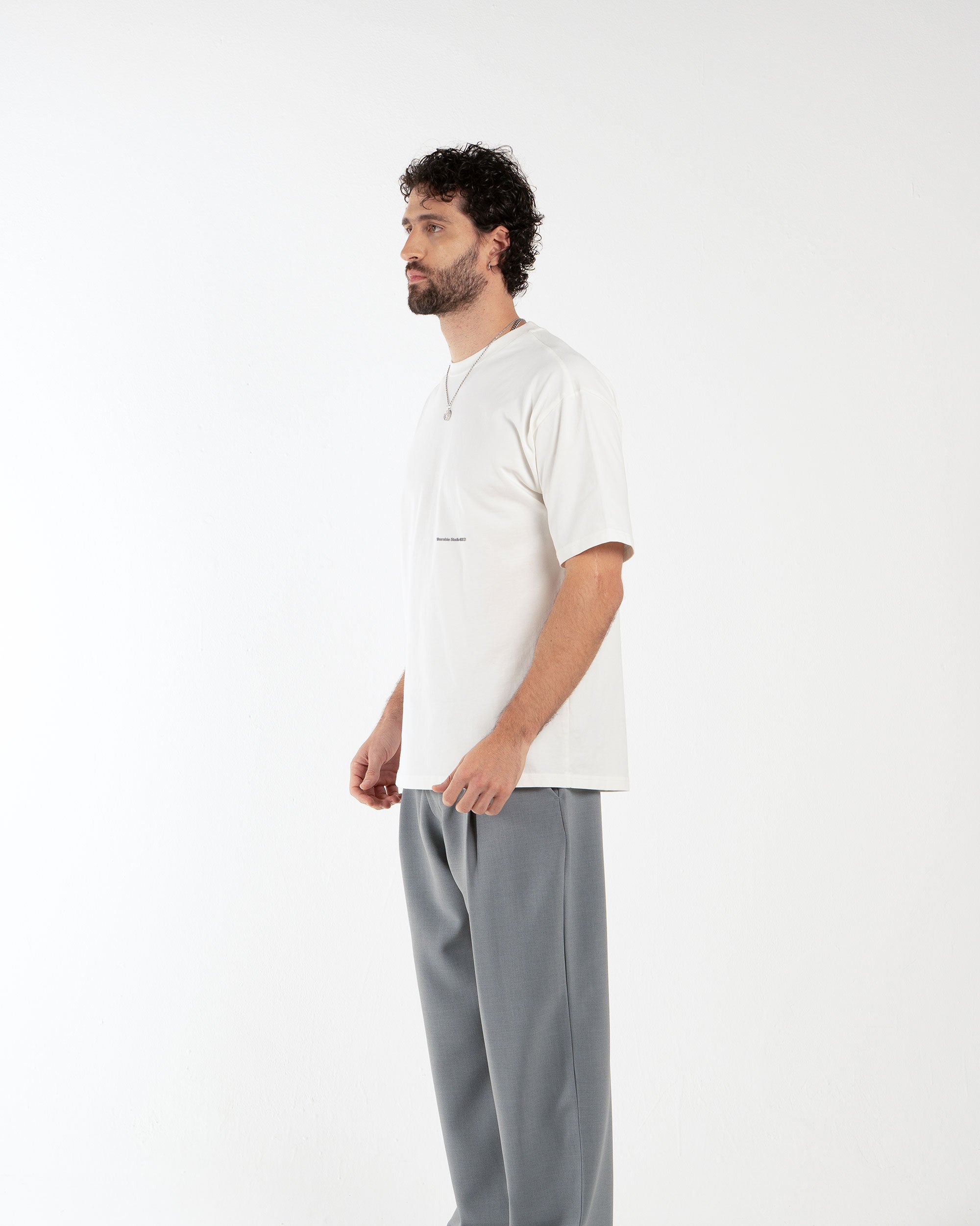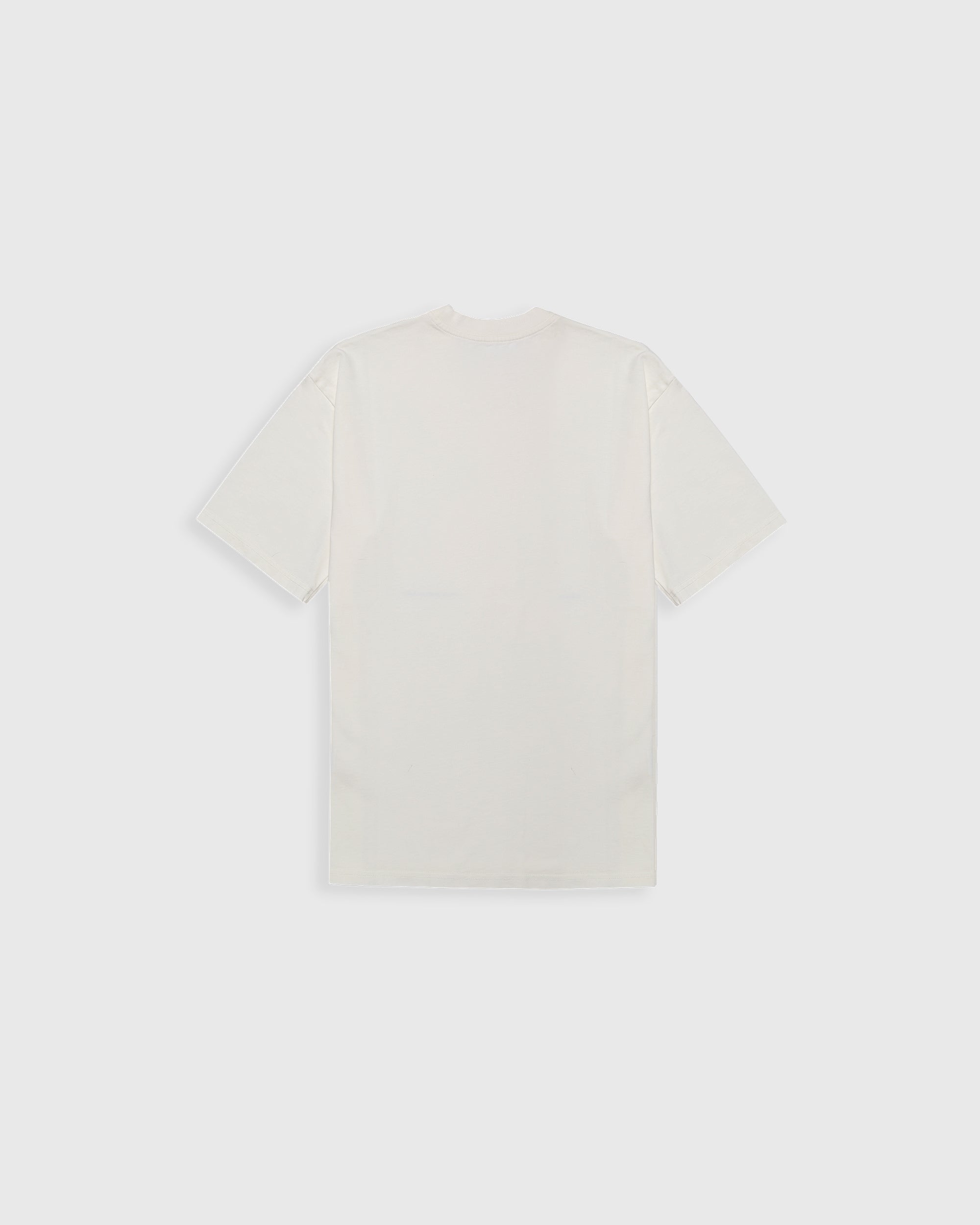 camiseta semioversized color ivory.100% algodón de alto gramaje (250gr) con un detalle de estampado delantero a la altura del codo color gris.