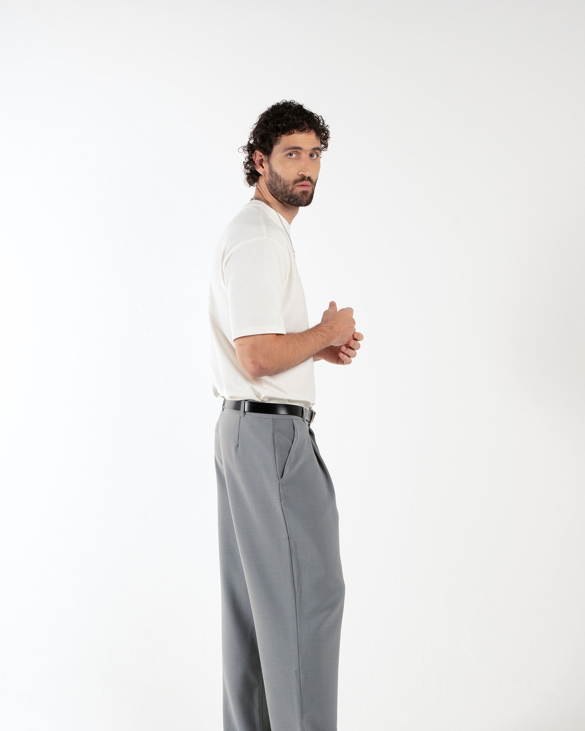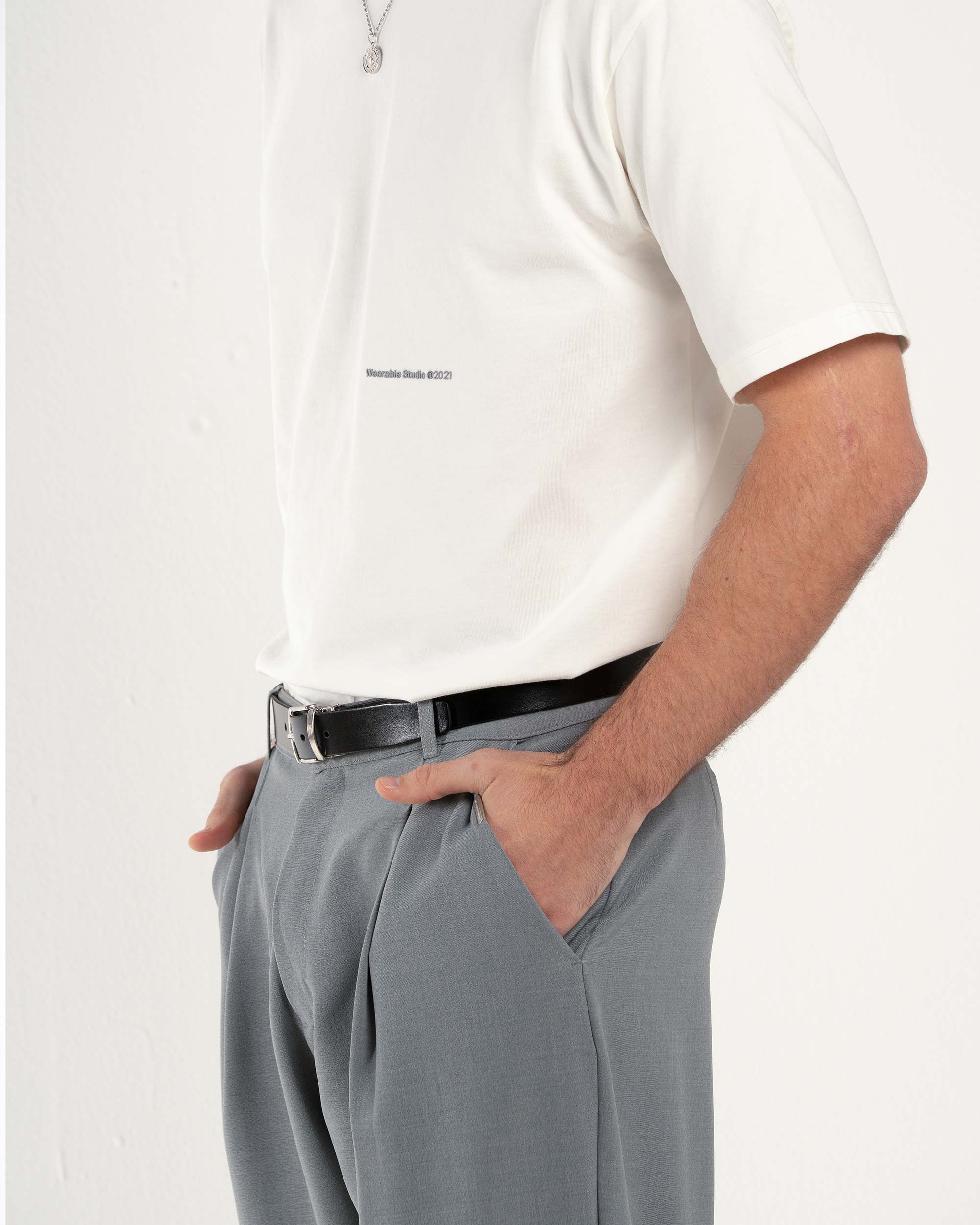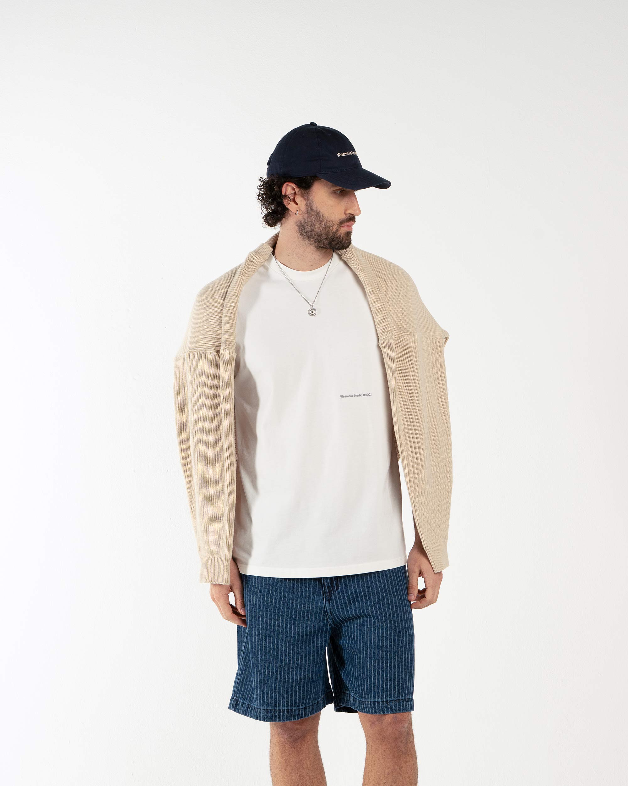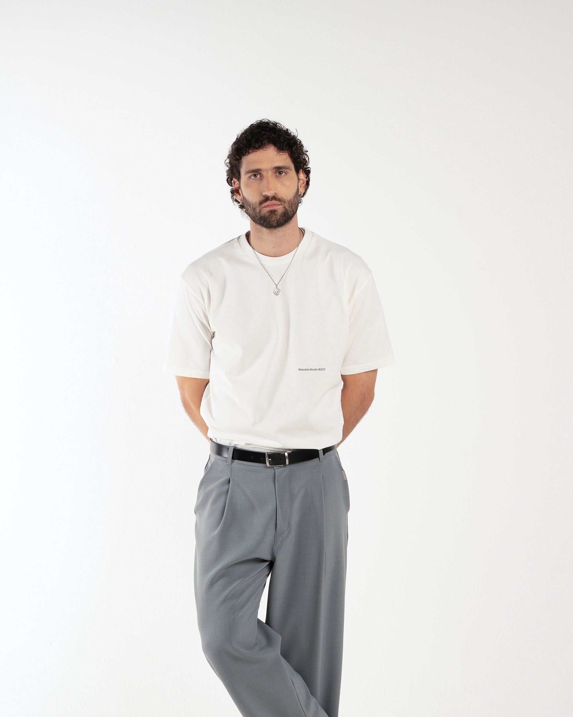 camiseta semioversized color ivory.100% algodón de alto gramaje (250gr) con un detalle de estampado delantero a la altura del codo color gris.