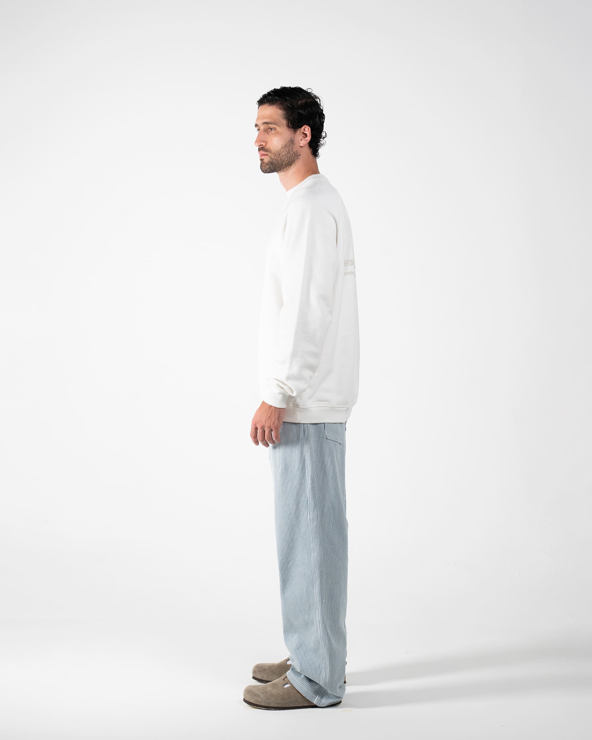 Crewneck fit semioversized, 100% algodón alto gramaje, con detalle texturizado en mangas. estampado punto corazón bajo a tono en alta densidad y estampado en centro espalda. Modelo mide 1,86 y usa talla L