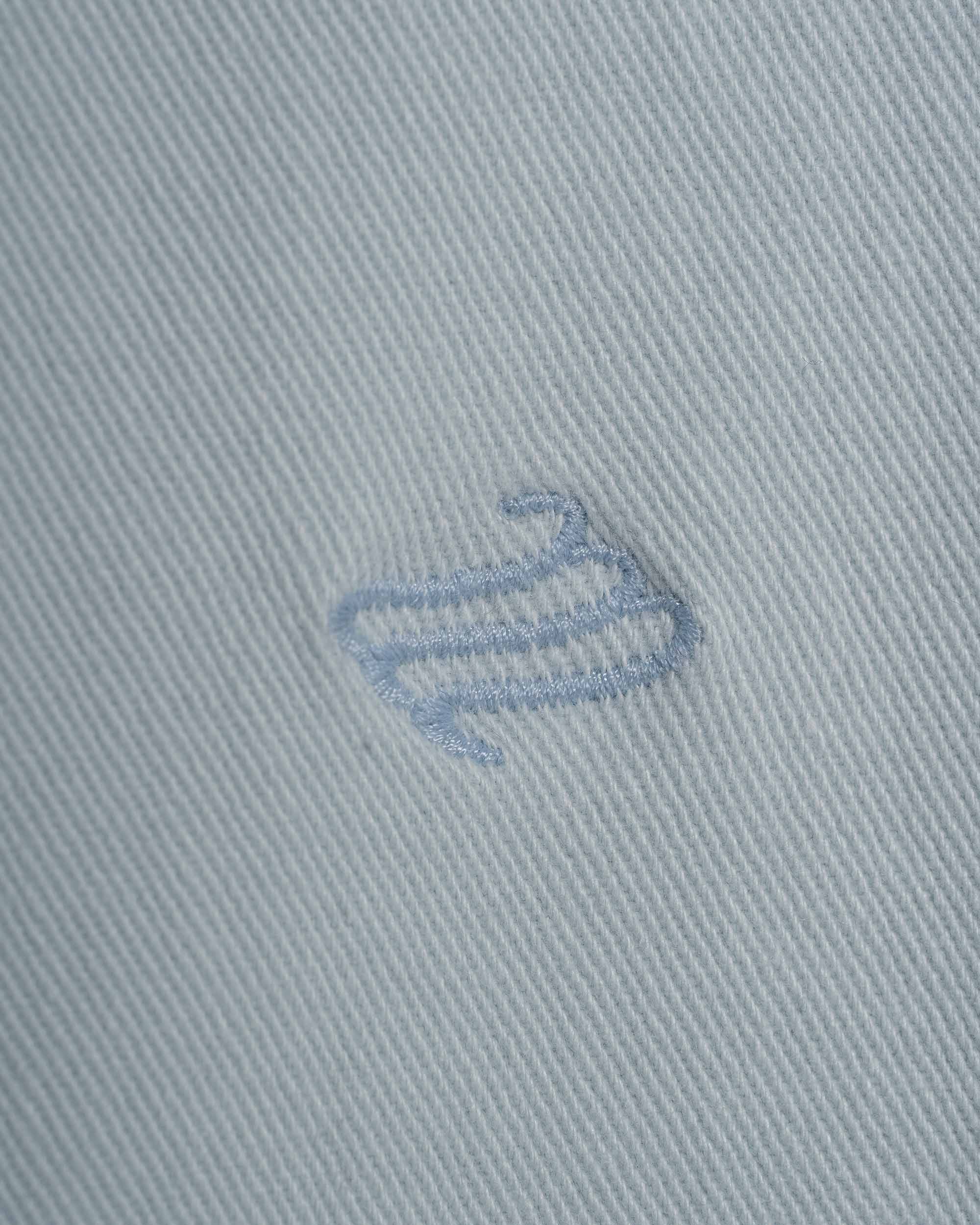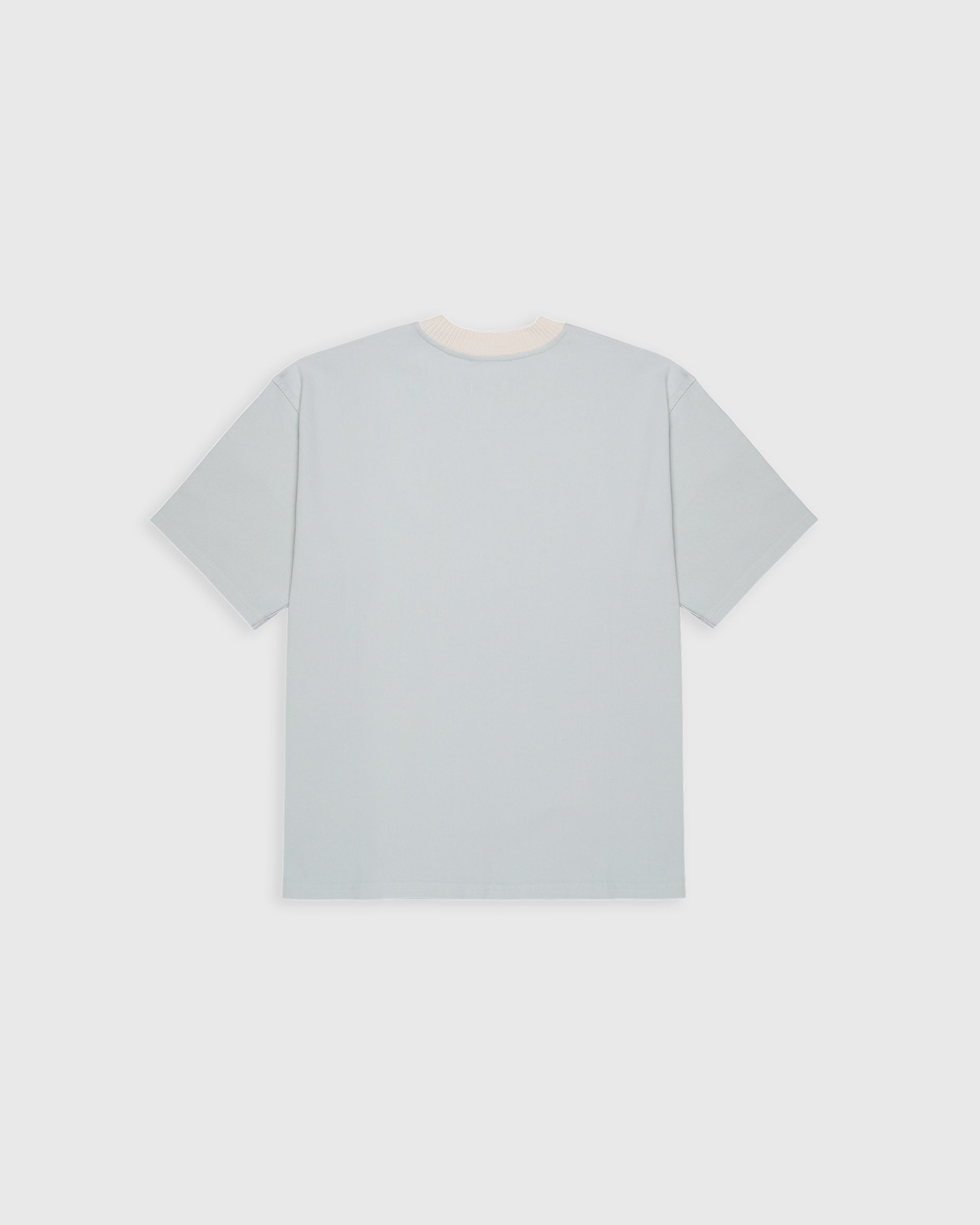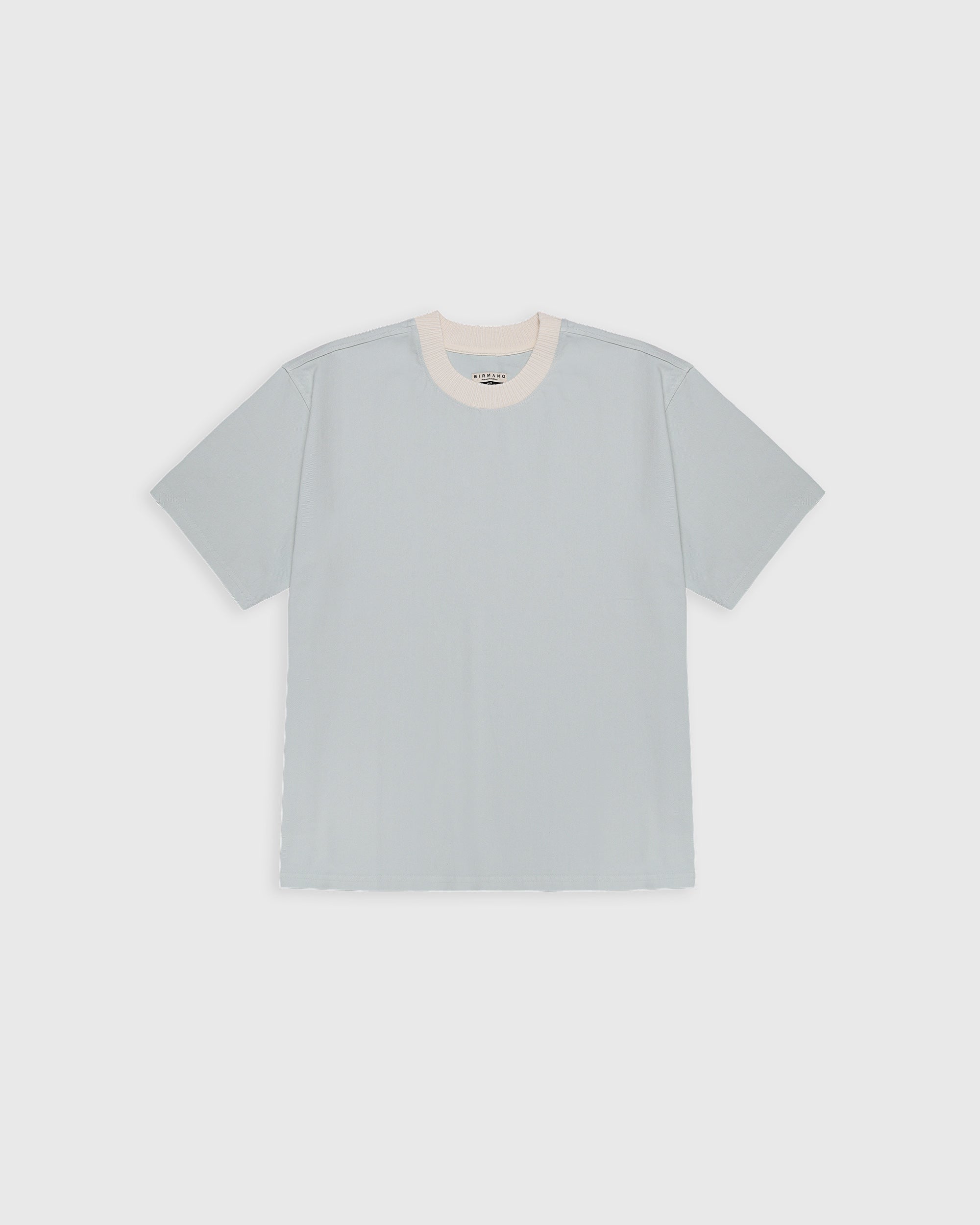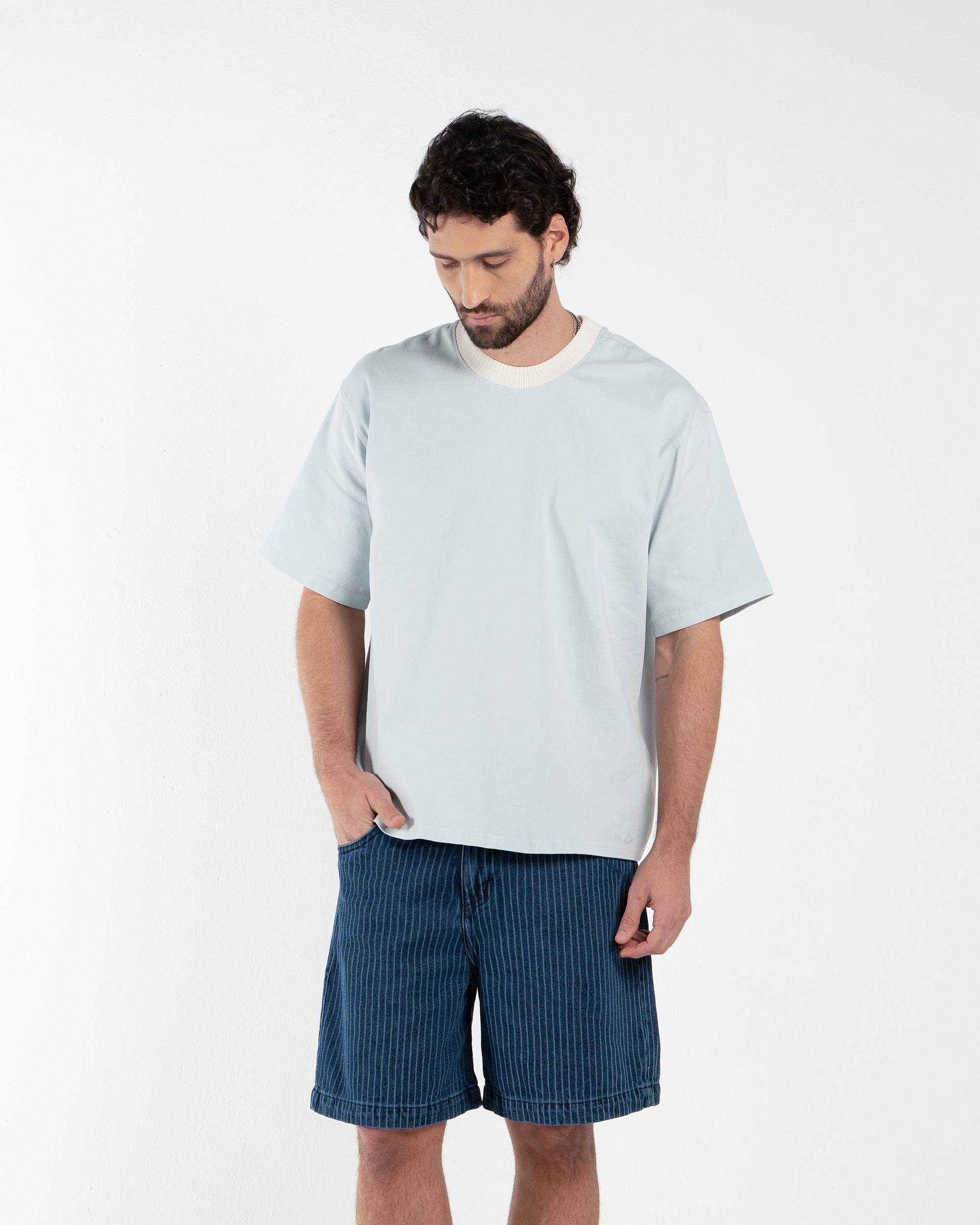 camiseta semioversized color azul hielo. drill tacto denim 100% algodón. estampado a tono en espalda y cuello tejido color ivory.